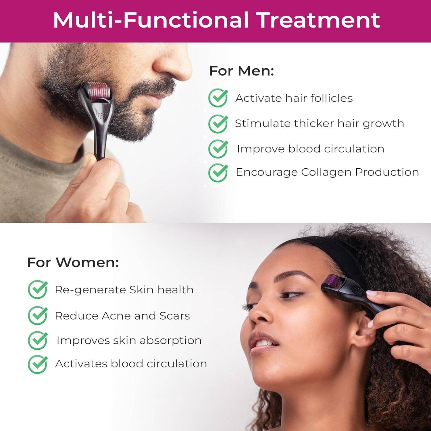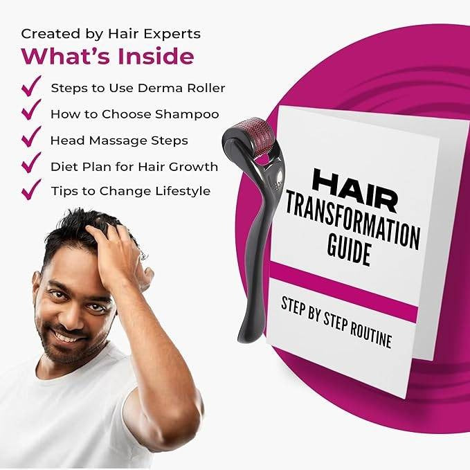 Built with a sturdy, non-slip handle and high-quality titanium needles, this roller ensures long-lasting performance. Simply roll it gently over the scalp as per the provided Hair Transformation Guide.